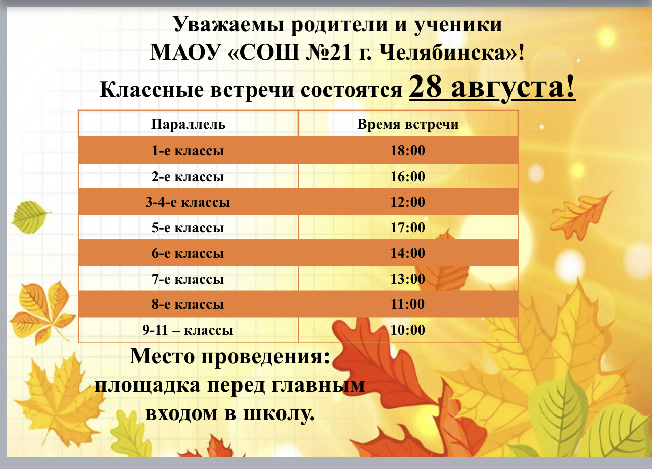 ВНИМАНИЕ! График классных встреч 28 августа