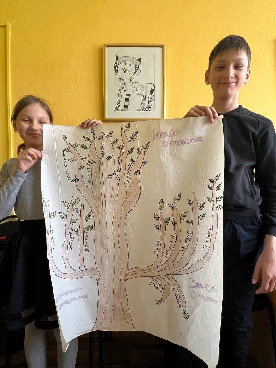 Ученики 6 класса нарисовали "Древо языков", на котором изобразили все славянские языки.