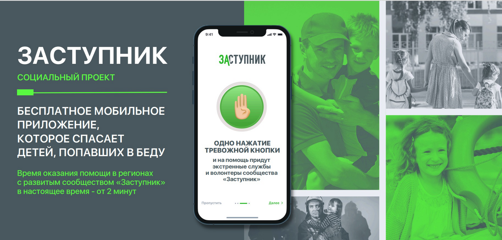 Предлагаем Вам бесплатно установить мобильное приложение “Заступник”, которое, в отличие от многочисленных приложений родительского контроля, позволяет ребенку не только послать сигнал бедствия в экстренной ситуации, но и, что более важно, получить помощь экстренных служб и волонтеров в невероятно короткий срок - всего от трёх минут.